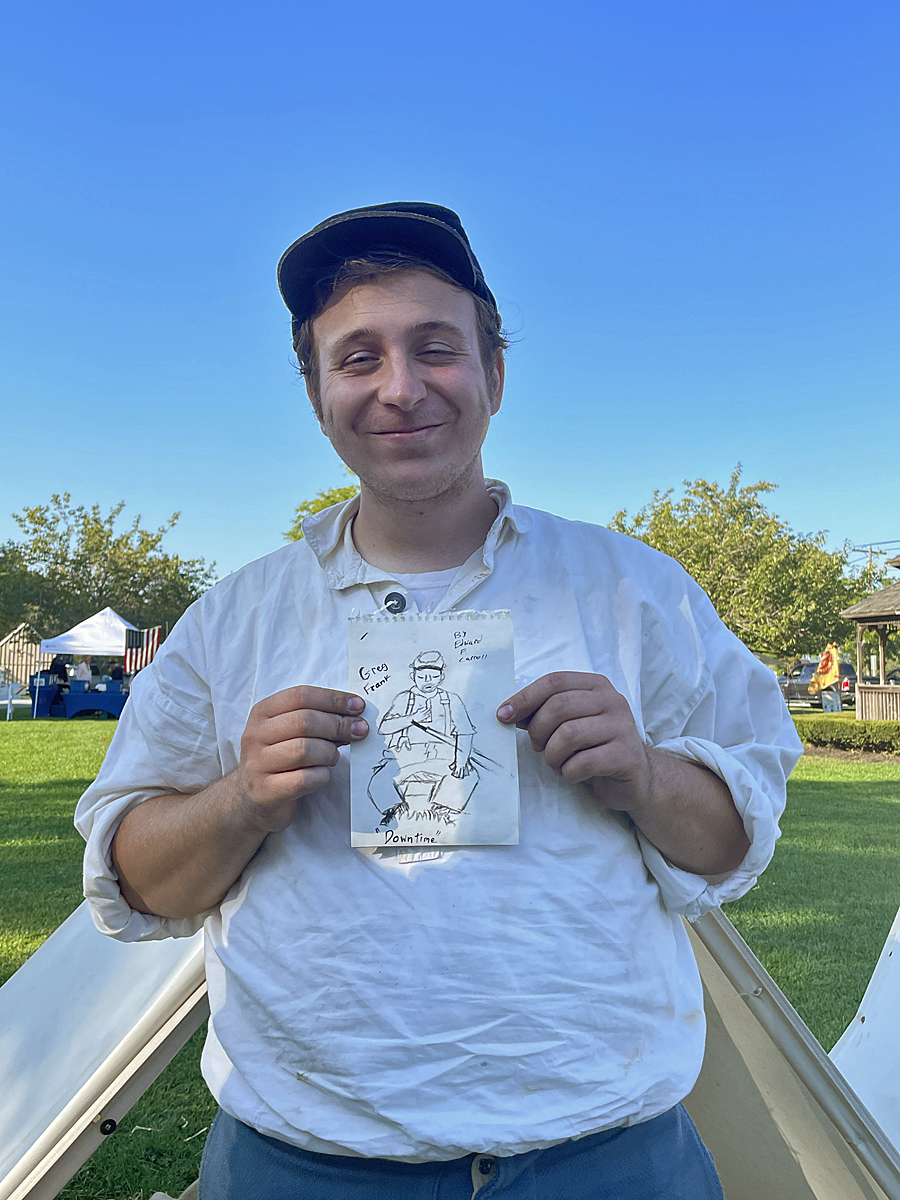 Pvt. Ed Carroll with his sketching of Pvt. Greg Frank