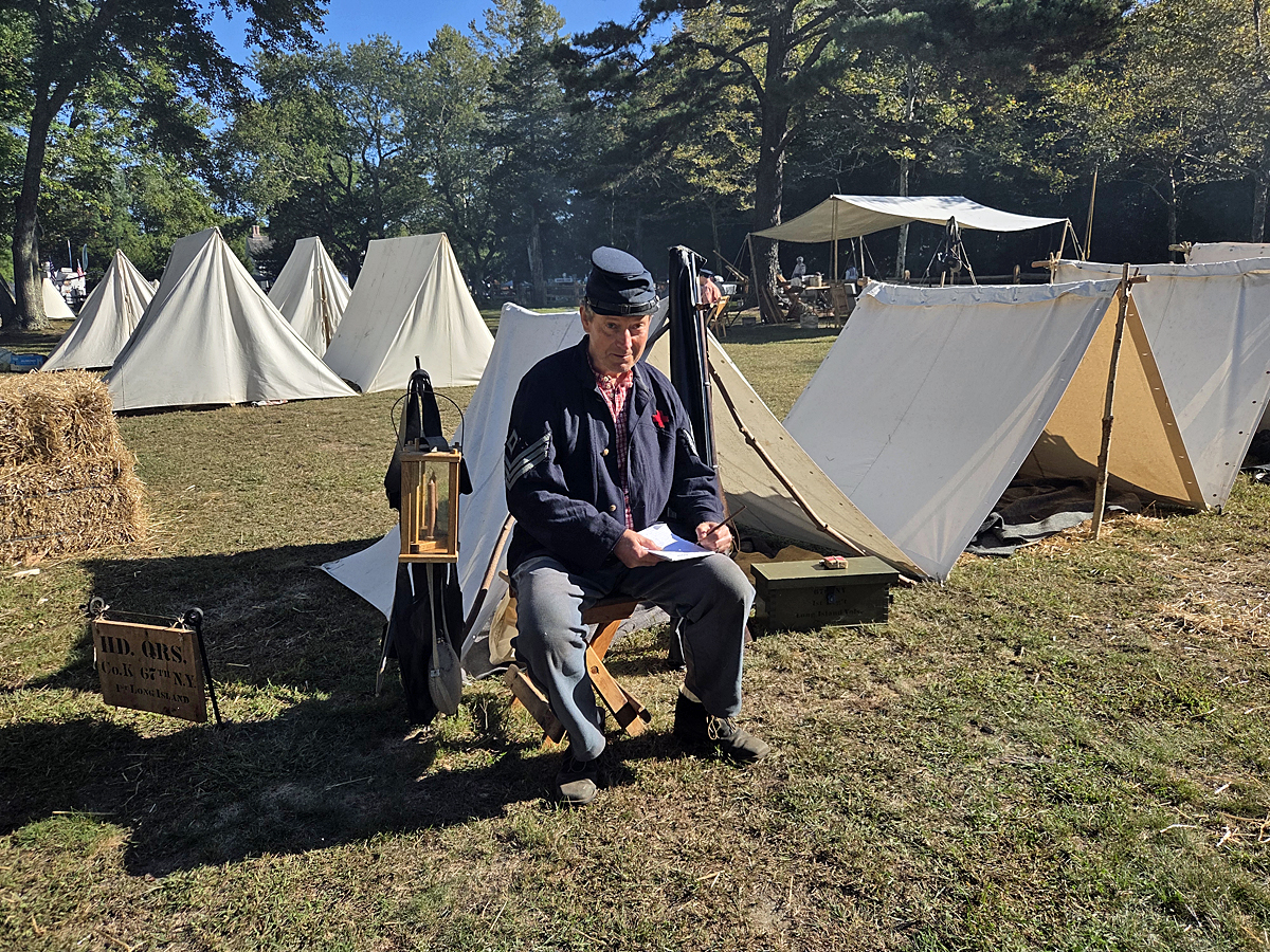 First Sgt. Moyer (Jeff Speight) writing the Morning Report